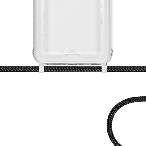 iPhone 13 ケース iPhone 13 縄掛け TPU カバー ストラップ付き 薄型軽量 IC カード収納 透明 TPU 背面 財布型 TPUカバー 護カバー 取り外し可能 電波影響なし 指紋防止 落下防止 Qi急速充電柔軟で変形しない [縄掛け-ブラック]