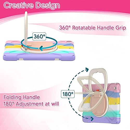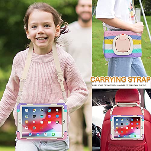 iPad 9.7 ケース iPad air2/iPad 第5世代 / 第6世代 2018 ケース 耐衝撃 頑丈 スタンド ハンドル付き ペンシル収納 回転スタンド ハンドストラップと肩掛けー付き 落下防止 アウトドア 子供 仕事用 (iPad6/iPad5/Air2/Pro9.7 虹色ピンク)