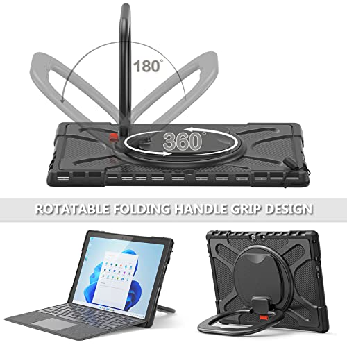 Surface Pro 7 / 6 / 5 / 4 ケース 180°回転 ハンドホルダー スタンド Surface 7 / 6 / 5 / 4 耐衝撃 全面保護ケース カバー おしゃれ 耐衝撃サーフェス プロ7 6 5 4 保護ケース 丈夫 キッズ 子供 防塵 多機能 実用 強い衝撃保護性能 (黒)