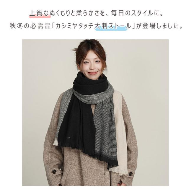 上質なぬくもりと柔らかさを、毎日のスタイルに。秋冬の必需品「カシミヤタッチ大判ストール」が登場しました。 ふんわり柔らかカシミヤタッチ素材 アクリル素材ながらカシミヤのようななめらかさ。ウールが苦手な方にもおすすめ。 軽量×高い保温性 1枚で驚くほど暖かく、軽やかな着け心地。長時間の使用でも疲れにくい。 肌に優しい触感 チクチクせず、なめらかで心地よい。つい触れていたくなる質感。 リバーシブルデザイン 1枚で2通りの表情。シーンに合わせて印象をチェンジ。 普段使いはもちろん、通勤・通学・和装・着物羽織・ひざ掛けにも。 結婚式・発表会・卒園・卒業・入学式などフォーマルシーンに対応。 クリスマス・誕生日・敬老の日のギフトにも最適。 自分用に心地よいストールを探している方 大切な人へ贈り物を探している方 レディース・メンズ問わず幅広い年代 |