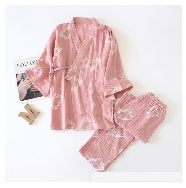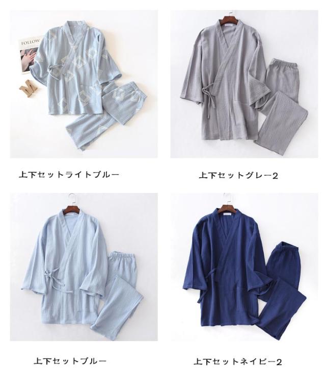 | 甚平パジャマ・2重ガーゼ・女性用 浴衣のような前開きパジャマ上下セパレートが脱着簡単。 さらさらとした素材を使っているので眠るときにもオススメ。 生地表面に凸凹加工が施されており吸湿性&速乾性が高く、夏場に最適な素材。 通気性と吸水、吸湿性に優れたガーゼ素材 とっても涼しいうえにエアコンなどの 冷えからもしっかりガードしてくれます。 肌ざわりが優しく風通しが良いので、部屋着や寝間着などリラックスウェアとして重宝します。プレゼントとしてもおすすめ。 | |