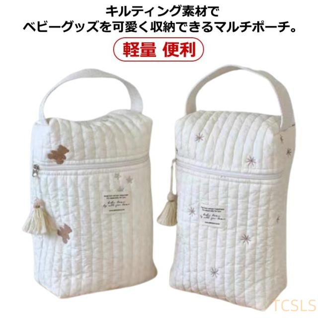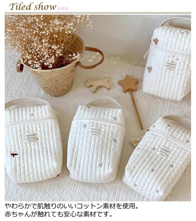おむつポーチ マグポーチ キルティング オムツポーチ マルチポーチ かわいい くま 葉 花柄 刺繍 キルトポーチ 送料無料 赤ちゃん ベビー 綿 おむつ入れ 哺乳瓶 小物入れ 着替え入れ ナチュラル 可愛い おしゃれ 哺乳瓶ケース おむつバッグ 出産祝い プレゼント