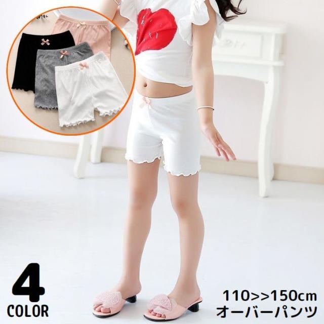 オーバーパンツ 子供 キッズ ジュニア 女の子 インナーパンツ ペチパンツ 見せパン スパッツ 薄手 無地 リボン メロウフリル