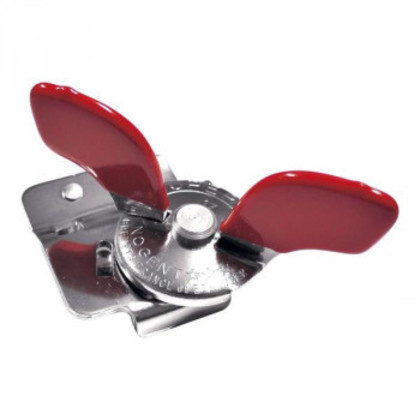 商品詳細:一斗缶の縁にセットして、レバーを回し続けると刃が缶に噛み切り進みます。一般の缶詰缶にもご使用いただけます。 生産国:フランス 素材・材質:鋼(ニッケルクロムメッキ)・PVC 商品サイズ:本体50×48mm、赤いレバー部長さ77mm 重量:90g