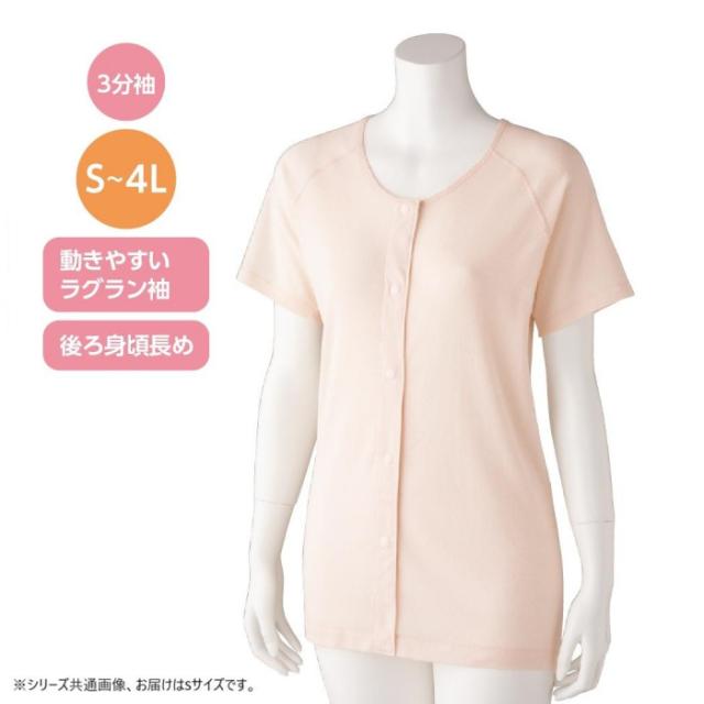 ケアファッション 3分袖ホックシャツ(2枚組)(婦人) ピーチ S 8986704 |b03
