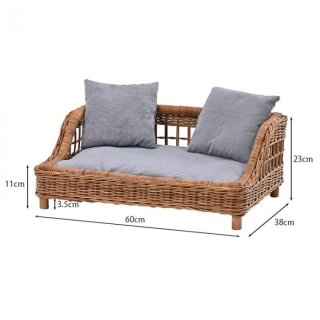 商品概要:ラタンを使用した自然の風合いを味わえるペットベッド。
