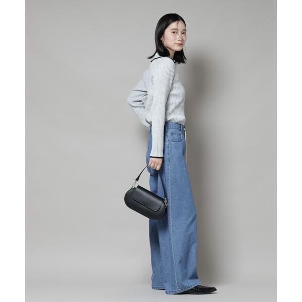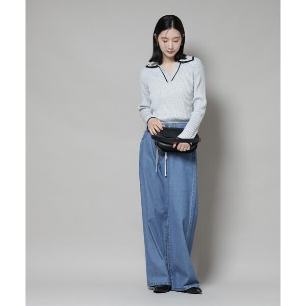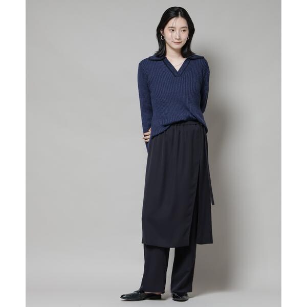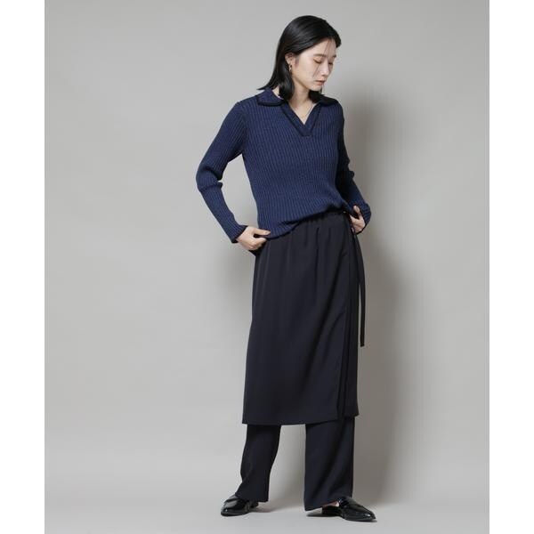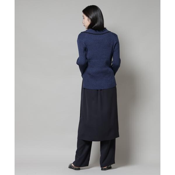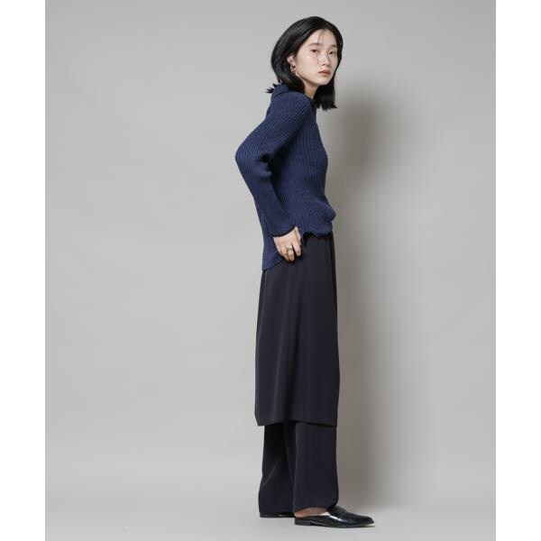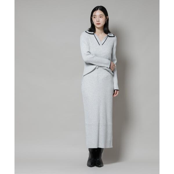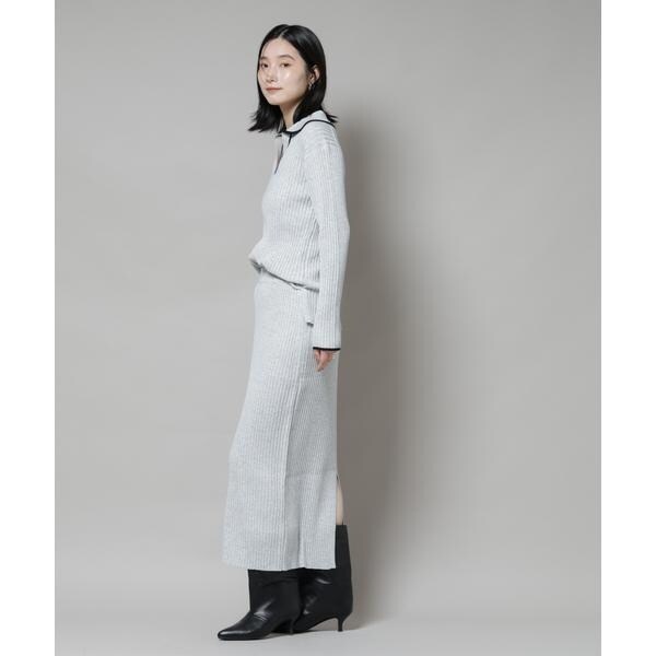 メランジ配色と、バイカラーデザインがトレンド感あるニットトップス。キレイ目のスカートや、パンツとも合わせやすく、同素材展開のスカートでセットアップも◎。着丈もやや長めなので縦のラインが強調されて、スッキリとした印象を演出してくれます!