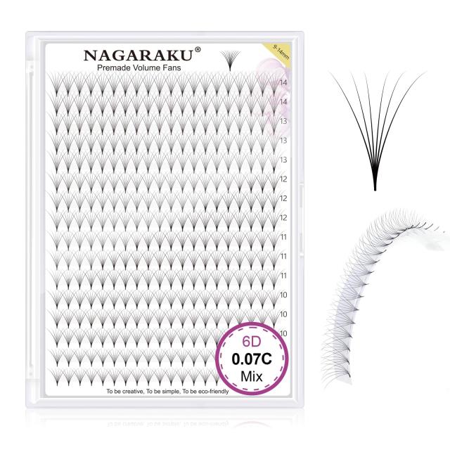NAGARAKU プレメイド 6Dファン 6本束まつげエクステ 320束入 ボリュームラッシュ Cカール 長さ9-14mmMix ブラック