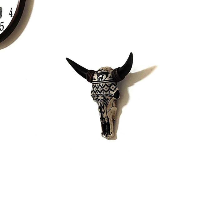牛のガイコツを模したタトゥーを施したようなデザインのヴィンテージ風オブジェ。