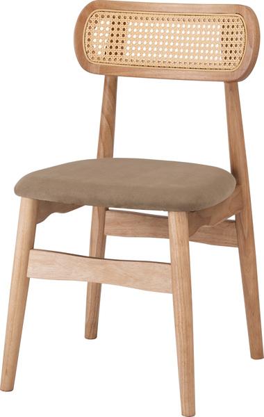 W45×D47×H80×SH46ベージュ高級感のあるスエード調の座面×天然木×ポリプロピレン素材の人口ラタンが優しい雰囲気を作り出してくれるチェア。