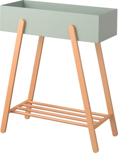W60.5×D28×H72.5グリーンナチュラルな木と優しい色合いをミックスした、植物をおしゃれに飾れるプランタースタンド。収納として室内でも使うことができます。