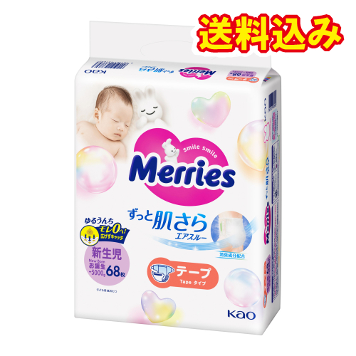 メリーズ テープ ずっと肌さら エアスルー 新生児用 5000gまで 68枚