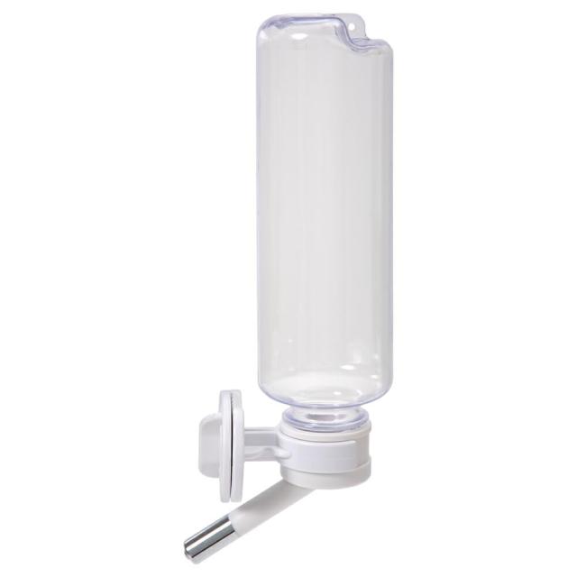 水が逆流しにくいから汚れにくい! マルカン うさぎのウォーターボトル300ml 対象 うさぎ、チンチラなど 特長 ●ノズル内のパイプを二重構造にし、水の流れをスムーズにしている給水器です。 ●吸口には2個のステンレスボールを内蔵で、逆流を防止し、ボトル内を清潔に保ちます。 ●市販の飲料水などのペットボトル(200~500ml)を再利用することができます。 ●吊り下げ穴付きで、天面から吊り下げて使用することもできます。 数量 1個 サイズ(約) 幅55×奥行85×高さ220mm(ノズル、ホルダー含む) 容量:300ml 材質 ボトル本体:PVC ノズル、ホルダー、ストッパー:PP 吸口:真鍮メッキ加工 吸口ボール:ステンレス パッキン:ゴム 原産国 台湾 ご注意 ※本品は小動物用の給水器です。その他の目的には使用しないでください。 ※ノズルや吸口をしっかりと締めてご使用ください。ゆるみ、パッキンのズレにより水漏れの原因となります。 ※火気や暖房器具のそばに置かないでください。火災やペットのやけど、商品の変形などの原因となります。 ※口径や形状のあわないペットボトルもありますのでご注意ください。 ※ケージによっては取り付けられないものもあります。 ※500mlを超えるペットボトルは使用しないでください。水の重さによって製品や飼育用品が破損する恐れがあります。 ※日光が差し込んだり、一日の温度変化が激しい窓際やエアコンなどの風が当たる場所への設置を避けてください。水漏れや水止まりの原因となります。 ※薄くてやわらかな素材のペットボトル内の水圧が不安定になり、「水がでない」「水漏れする」などの状態が起こりやすくなります。 ※ケージに取り付ける際などにワイヤーを広げられた場合は、必ず元に戻して使用してください。 ※毎日必ず水が出る事を確認してください。