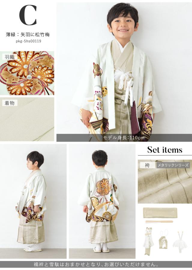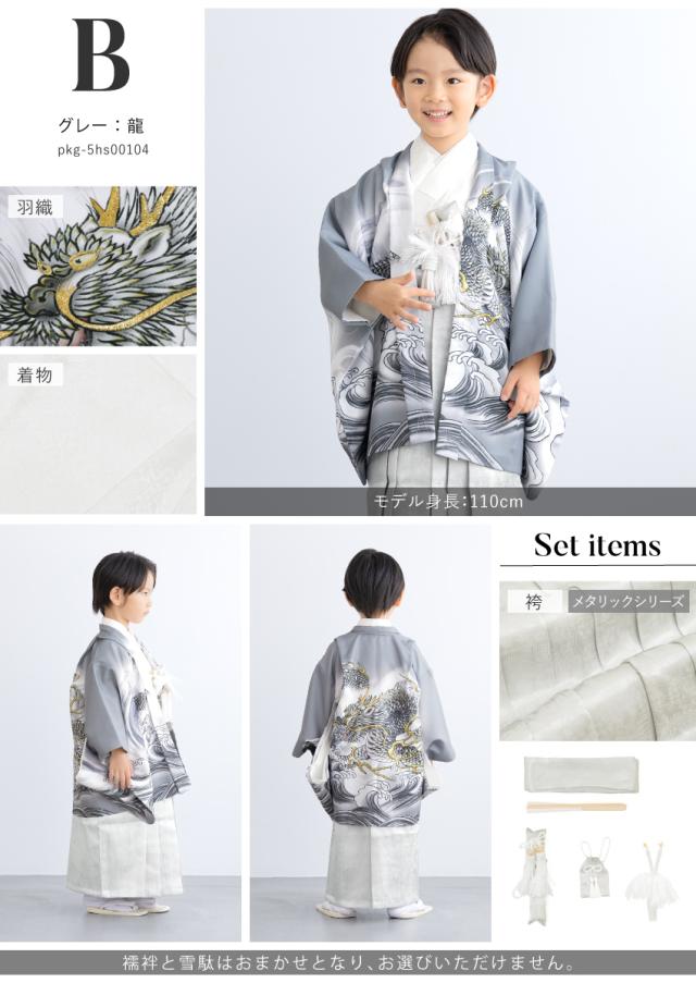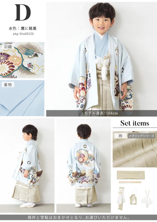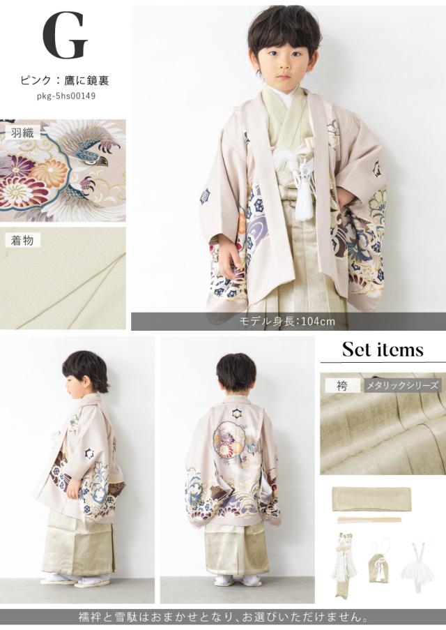 七五三 着物 男の子 5歳 袴セット 羽織 袴 襦袢 帯 雪駄 セット 白 黒 緑 水色 紺 灰色 ベージュ ピンク 龍 鷹 男児 五歳 753 購入 販売 お正月 創美苑 110cm 送料無料