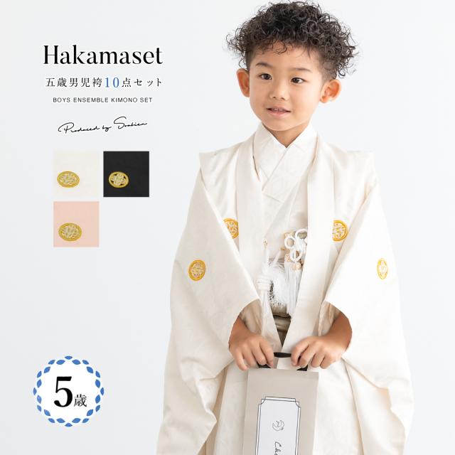七五三 着物 男の子 5歳 袴セット 羽織 袴 襦袢 帯 雪駄 セット 白 黒 ピンク 菱 鷹羽 五つ紋 紋付 男児 五歳 753 フルセット 購入 販売 お正月 創美苑 110cm 送料無料