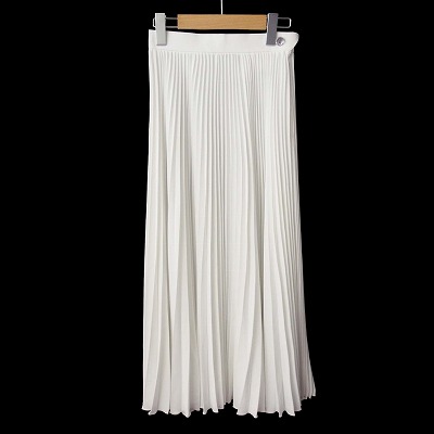 【中古】イタリヤ 伊太利屋 スカート プリーツ ロング ビジュー 7A2 白 ホワイト レディース