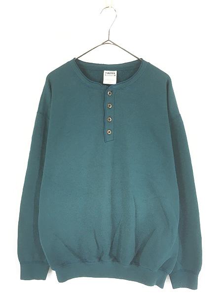 古着 90s TULTEX 無地 プレーン セットイン ヘンリーネック スウェット トレーナー グリーン L