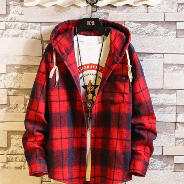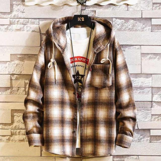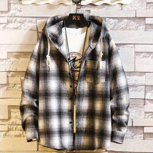 1枚でスタイリングのアクセントに!シーズンムード高まるチェックネル素材を使用したチェックフードシャツ。