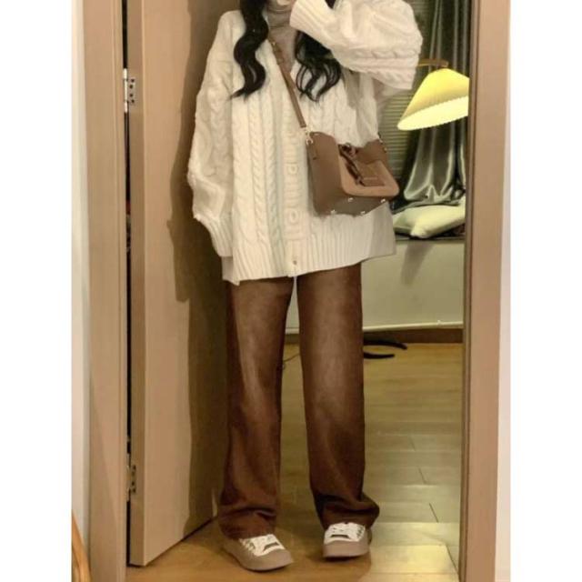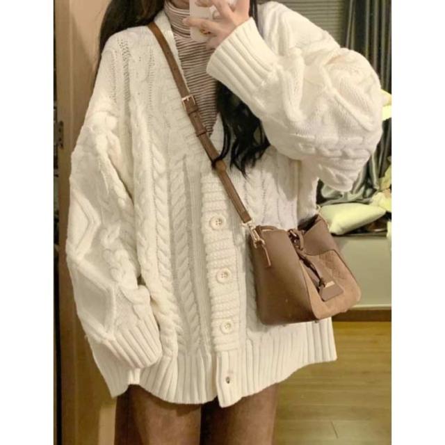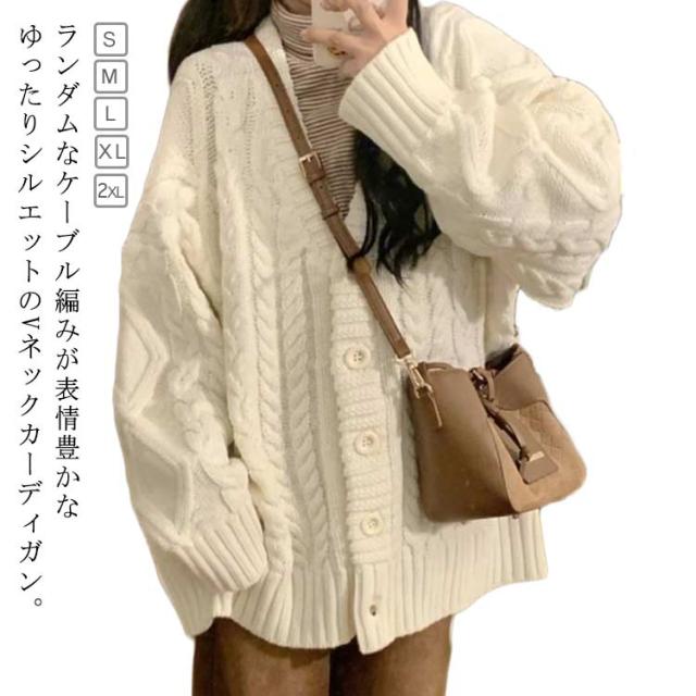 Vネック カーディガン レディース ケーブル編み カーデ おしゃれ ケーブルニット 厚手 オーバーサイズ 秋 ニットカーディガン アウター ニット 羽織り ゆったり 長袖 ニットトップス 通学 ルーズ