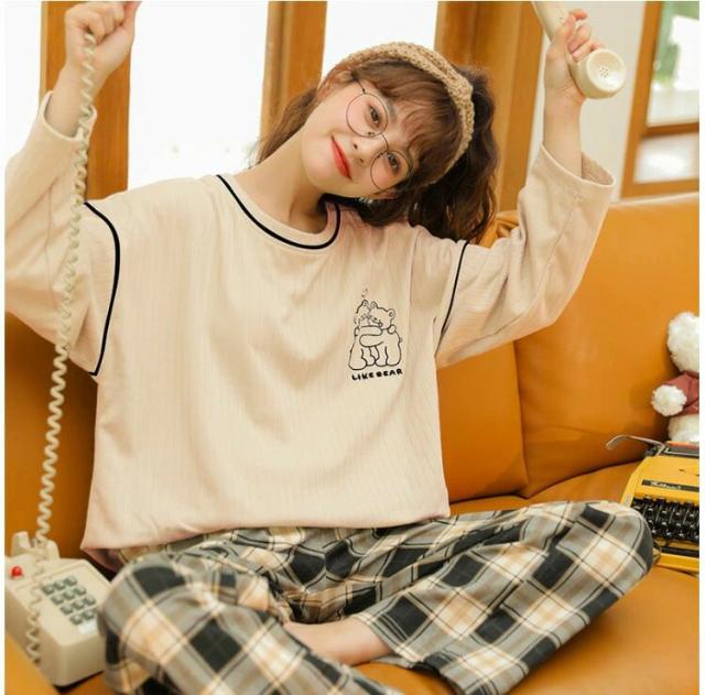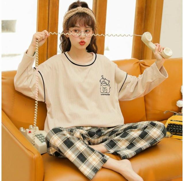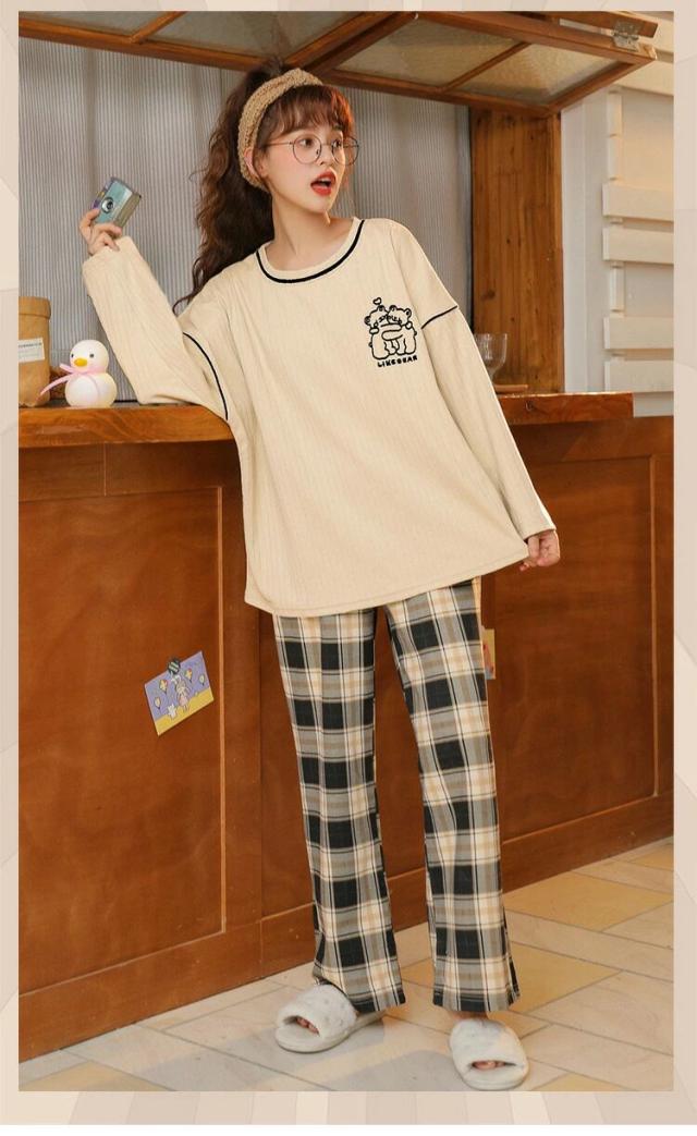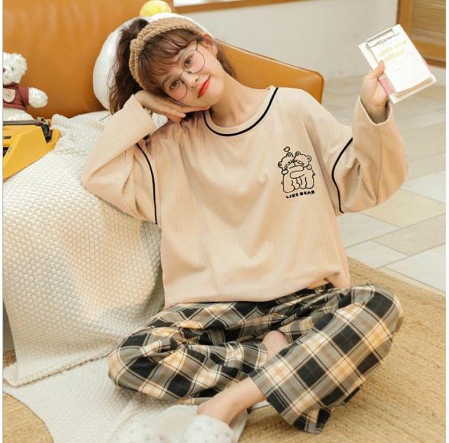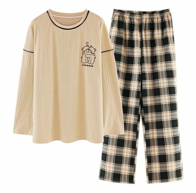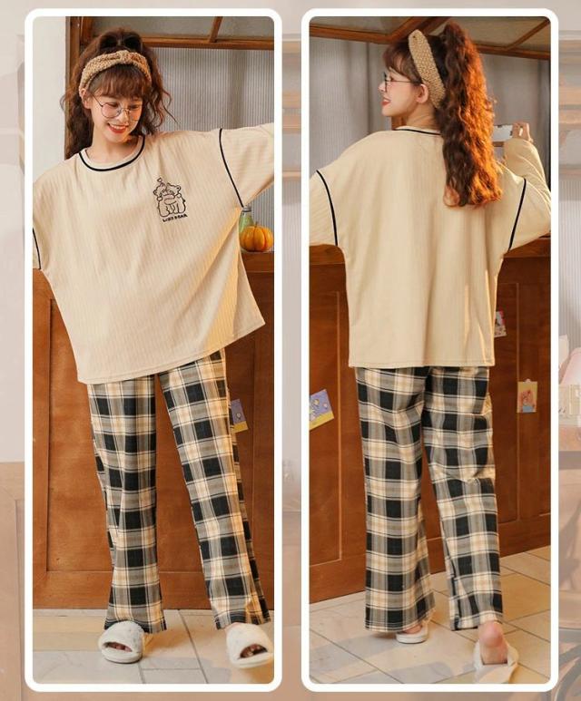 パジャマ レディース ルームウェア 春秋冬 セットアップ ゆったり 綿 長袖 女性 上下セット チェック柄 可愛い 韓国風 寝巻き 部屋着 ロングパンツ