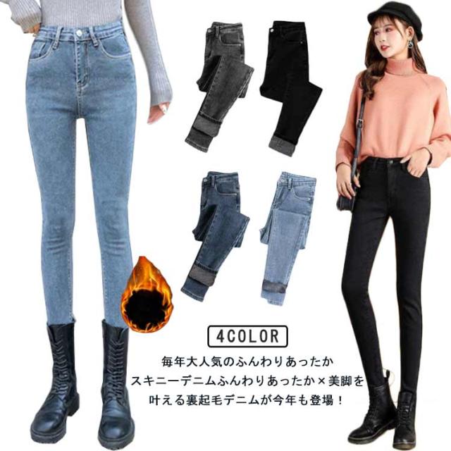 タイト スキニーパンツ あったかパンツ レディース 裏起毛 デニムスキニーパンツ ストレッチ ハイウエスト 細身 スリム あったか 細見え デニムパンツ 厚手 あたたかい ボトムス ジーパン