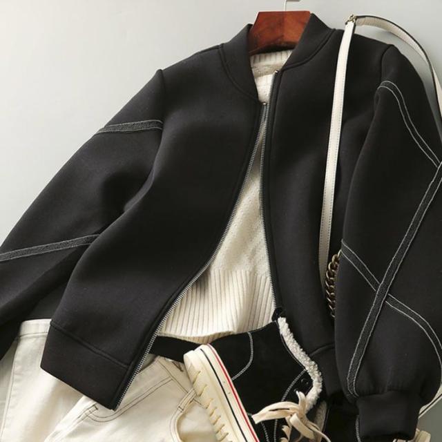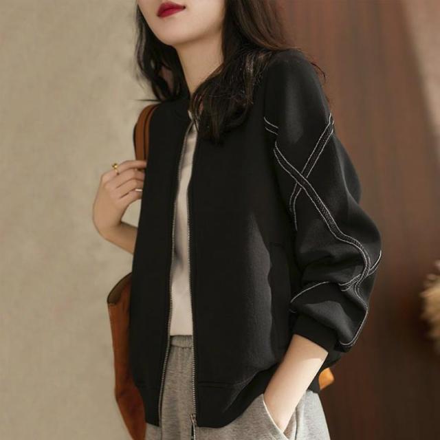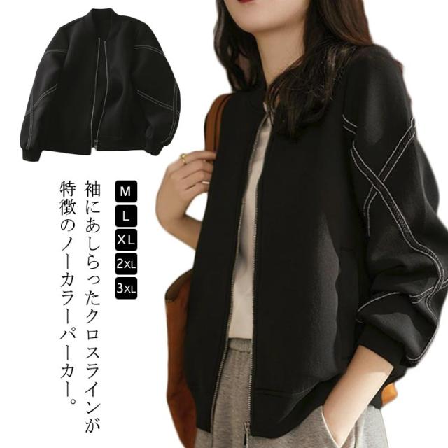 スタジャン レディース 春 秋 アウター ノーカラー 長袖 ジップアップ ジャケット スウェット ショート丈 上着 シンプル 体型カバー コート ライトジャケット 無地 OL カジュアル 大 パーカー