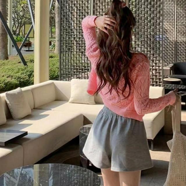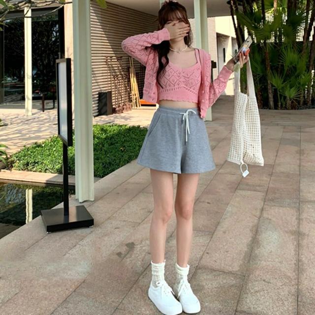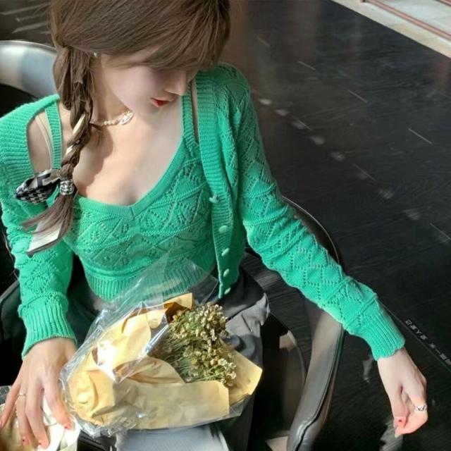 ショート丈 ニットトップス レディース セットアップ Vネック 前開き 韓国風カーデ クロップド キャミソール セクシーコンパクトなシルエットで着やせするカーディガン&キャミソールの2点セットアイテム