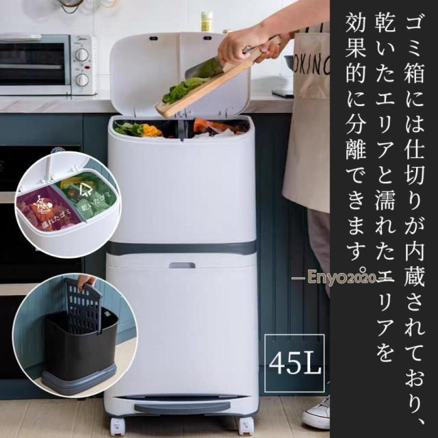 ゴミ箱 45L袋可 45リットル袋可 おしゃれ フロントオープン 分別 ダストボックス 積み重ね キッチン スリム シンプル 大容量 ふた付き 縦型 カウンター下