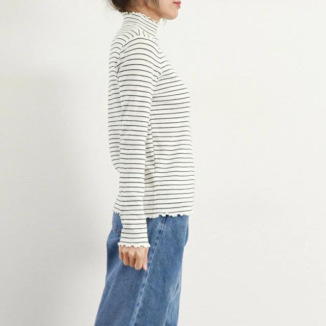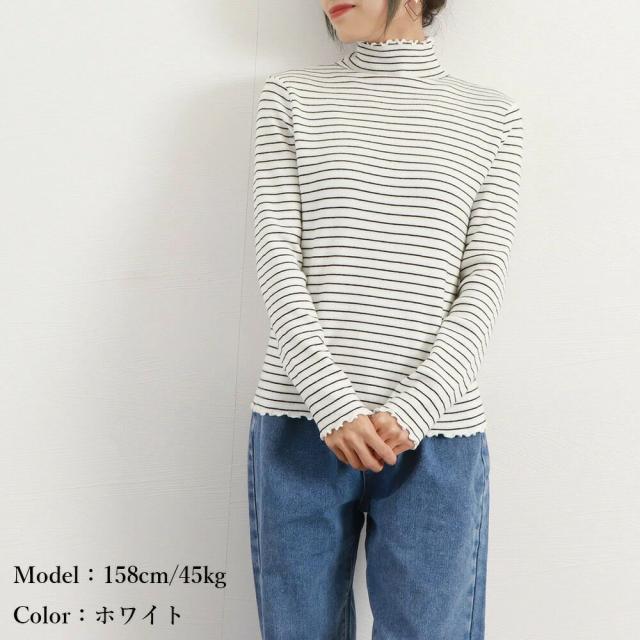 レディース ハーフタートルネック ニットプルオーバー 重ね着 ニットウエア カジュアルニットソー きれいめニットインナーカジュアルな着こなしが魅力的なボーダー柄ハイネックニットトップス