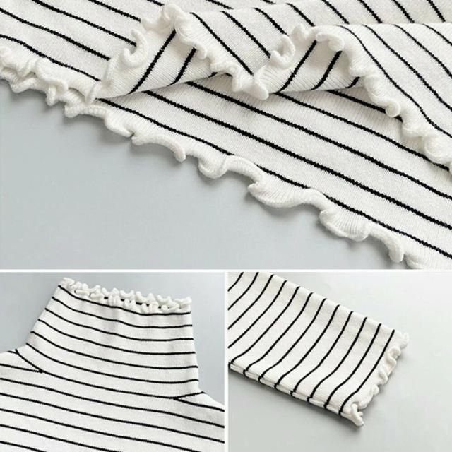 ボーダー柄ニットトップス 韓国ハイネック レディース ハーフタートルネック ニットプルオーバー 重ね着 カジュアルニットソー きれいめニットインナー ニットウエア