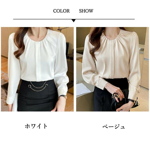 ギャザーブラウス 通勤OL オフィスカジュアル シャツブラウス お洒落 着やせトップスきれいめ とろみシャツ 春秋服韓国フロントタックで立体感を出した、軽やかで上品な長袖シャツブラウス。