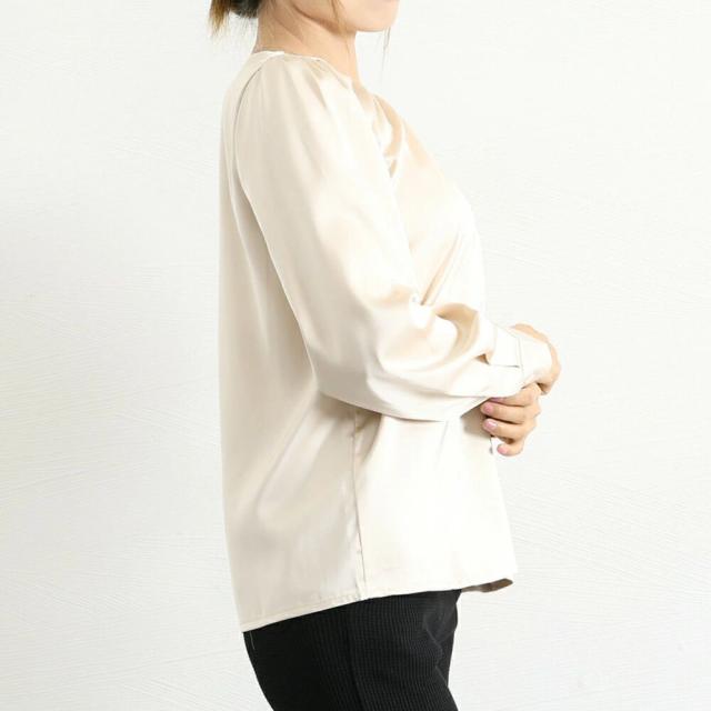 首元のタックデザインがデコルテを綺麗に魅せて、女性らしさをアップ!