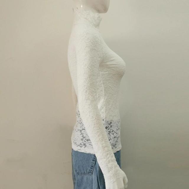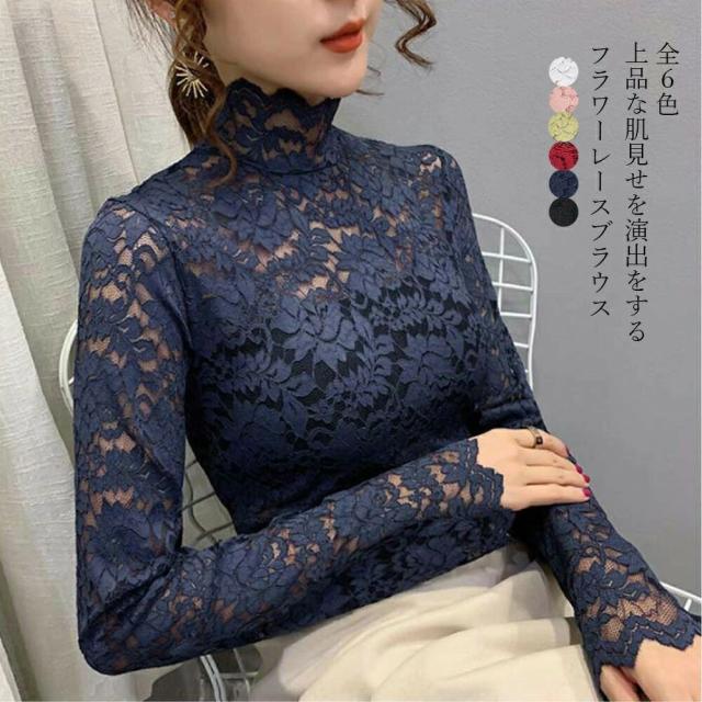 総レース カットソー レディース 花柄 シースルー ハイネック トップス セクシー インナー 重ね着 エレガント