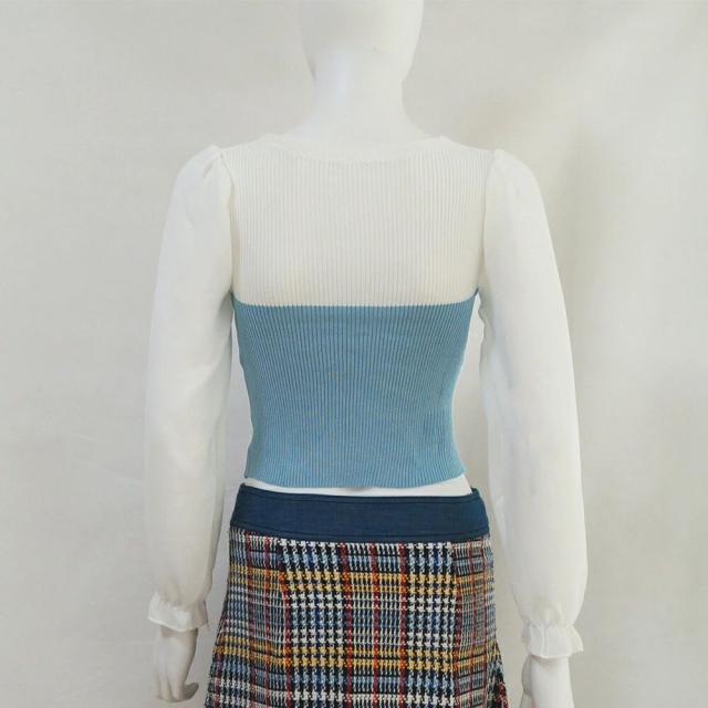 ニットトップス シフォン パフスリーブ レディースファッション 豊富な品揃え スカイブルー ブラック