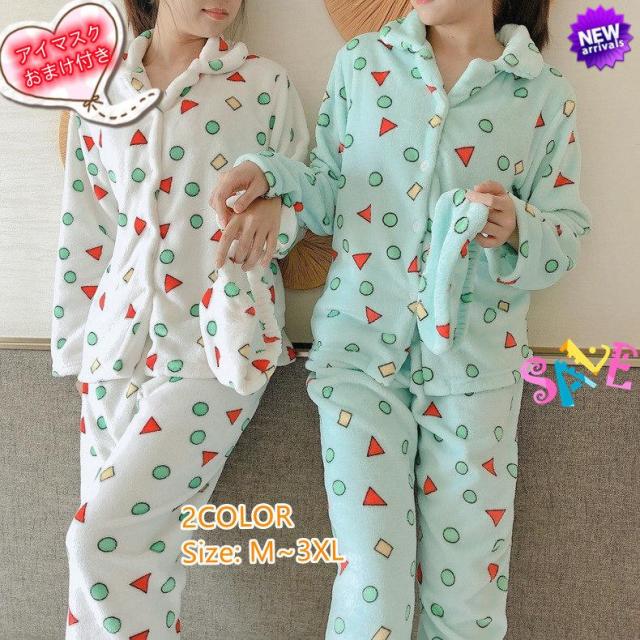 ルームウェア レディース 秋冬 あったか もこもこ 長袖 お揃い ペア 部屋着 合宿 クレヨンしんちゃん セットアップ ギフト 上下セット 寝巻き新作 メンズ