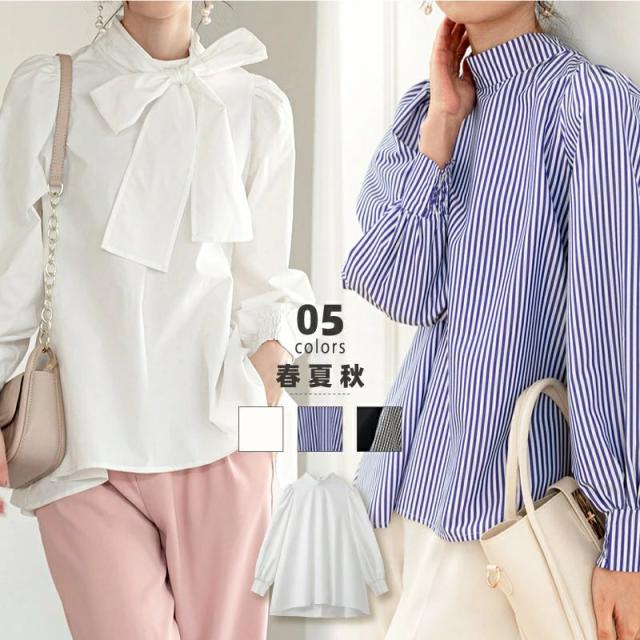 リボンブラウス ボリュームスリーブブラウス ボウタイブラウス ブラウス スタンドカラー シャツ レディース ボウタイ リボンタイ 立ち襟 リボン パフスリーブ コットン ポリエステル ストライプ 綿 トップス ハイネック プチハイネック ボリューム袖 ボリュームスリーブ バルーン袖 バルーンスリーブ パフスリーブ パフスリーブトップス ぽわん 袖 ぽわん袖 プルオーバー 1枚で決まる 柄 ストライブ ギンガムチェック 大きいサイズ シャツブラウス 体型カバー ゆったり オフィス オフィスカジュアル オフィスカジュアル秋冬カジュアル フォーマル 華やか 大人 きれいめ かわいい 可愛い おしゃれ オシャレ 通勤 通学 入学 入学式 入園 入園式 卒園 卒園式 卒業 卒業式 大学 大学生 ママコーデ ママ 母 黒 白 青 23年 春夏新作 春服 夏服 秋服 春夏 春 夏 秋 韓国 韓国ファッション 10代 20代 30代 40代 50代 ココモモ