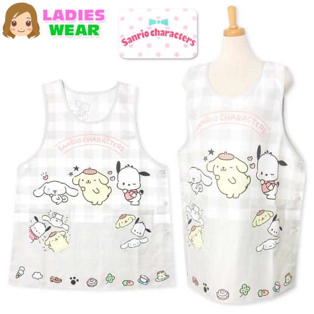 【送料無料】【大きいサイズ】婦人 レディース 保育士 ラン型 エプロン Sanrio サンリオキャラクターズ サイドボタン留め 大人用 LL-3L 3L-4L sl-0658【メール便対応】