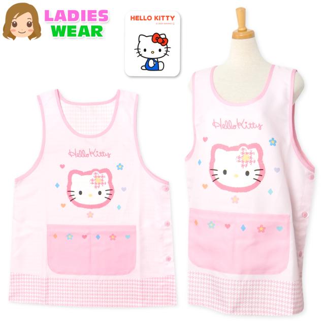 【送料無料】【大きいサイズ】婦人 レディース 保育士 ラン型 エプロン Sanrio サンリオ ハローキティ サイドボタン留め 大人用 LL-3L 3L-4L sl-0659【メール便対応】