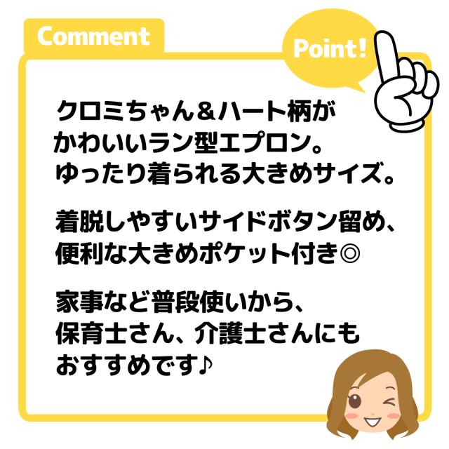 【送料無料】【大きいサイズ】婦人 レディース 保育士 ラン型 エプロン Sanrio サンリオ クロミ サイドボタン留め 大人用 LL-3L 3L-4L sl-0660【メール便対応】