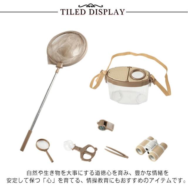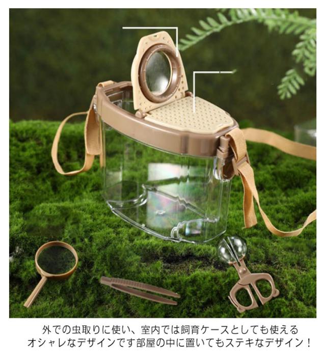 | 5倍放大?付きケースデザイン!昆虫ケースの7点セット、昆虫観察や自由研究に。 自然や生き物を大事にする道徳心を育み、豊かな情緒を安定して保つ「心」を育てる、情操教育にもおすすめのアイテムです。 コンパクトサイズなのでお子様にも持ち運びが簡単です。 外での虫取りに使い、室内では飼育ケースとしても使えるオシャレなデザインです部屋の中に置いてもステキなデザイン! | |