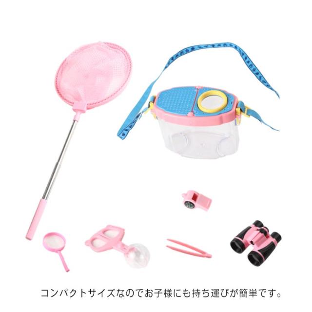 むしとり 7点セット かわいい 飼育観察 昆虫ケース 飼育ケース 魚 昆虫採集 昆虫 昆虫ケージ 観察ケース 拡大鏡付き 拡大鏡付き 観察 虫取り網 子ども キッズ 夏休み 自由研究 ピンセット 望遠鏡 あみ 紐付き