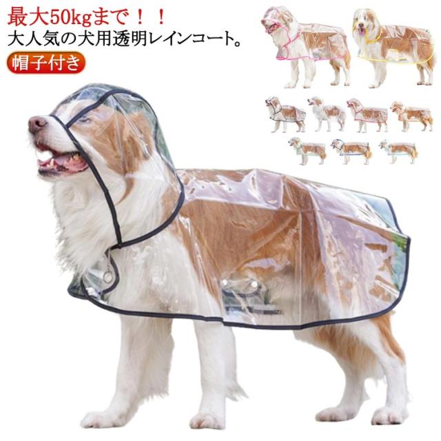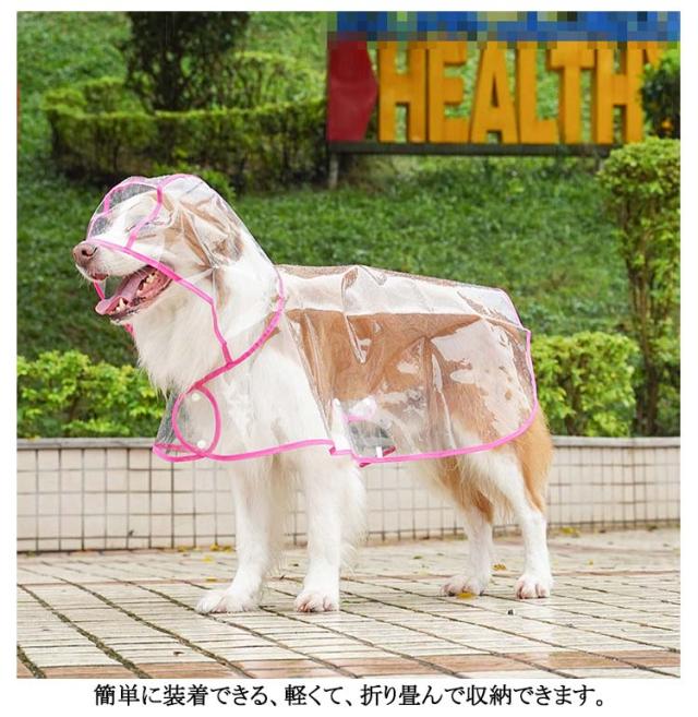 送料無料 犬用透明レインコート 大型犬 中型犬 レインポンチョ ポンチョ型 ドッグウェア 雨具 レインウェア フード付き 帽子付き 小型犬 犬服 ペット服 梅雨 雨対策 安全 お散歩 雨除け イヌ ドッグ DOG