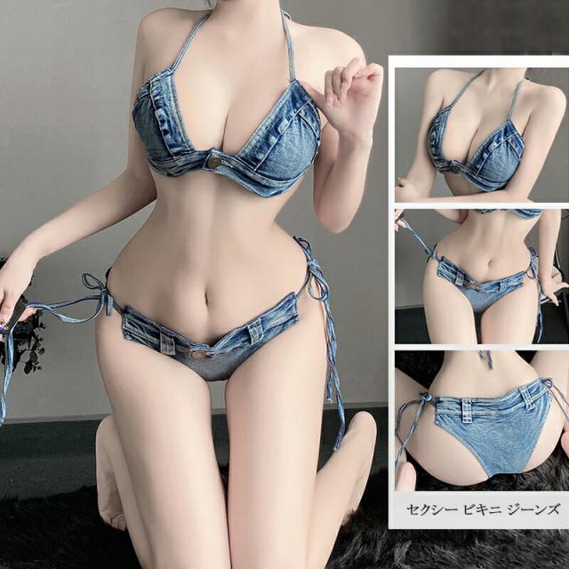 SENMHS コスプレ えろい 下着 ビキニ デニム ハイウエスト ゆたり デニムパンツ 美脚 可愛い 着痩せ カジュアル マイクロミニ パンツ レディース 脚長 ローライズ ホットパンツ クラッシュ