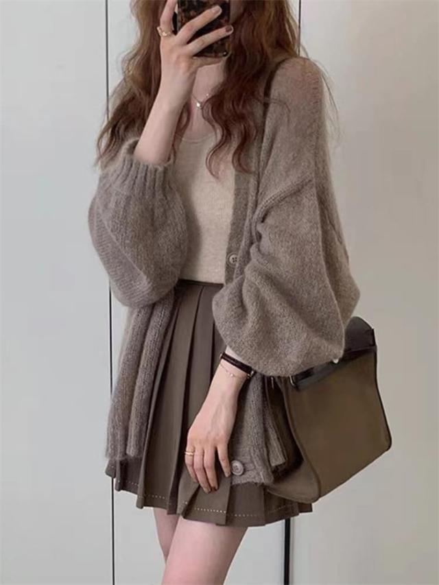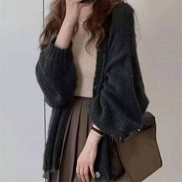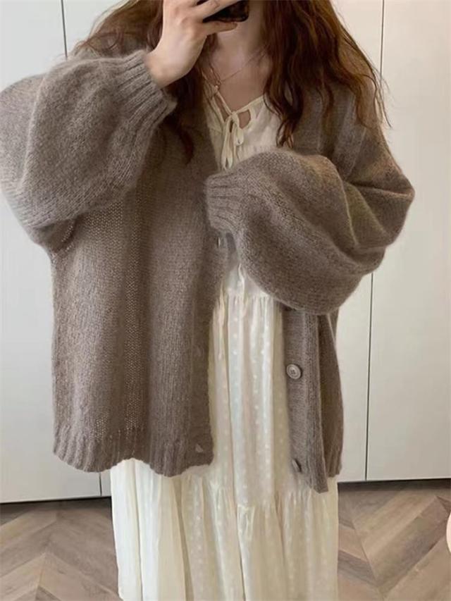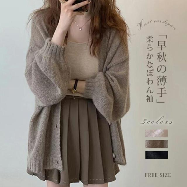ニットカーディガン バルーンスリープ カーディガン ニットカーデ 薄手 モヘア ぽわん袖 レディース ニット ゆるカーディガン トップス ベーシック 大人カジュアル 柔らか ゆっ 羽織り