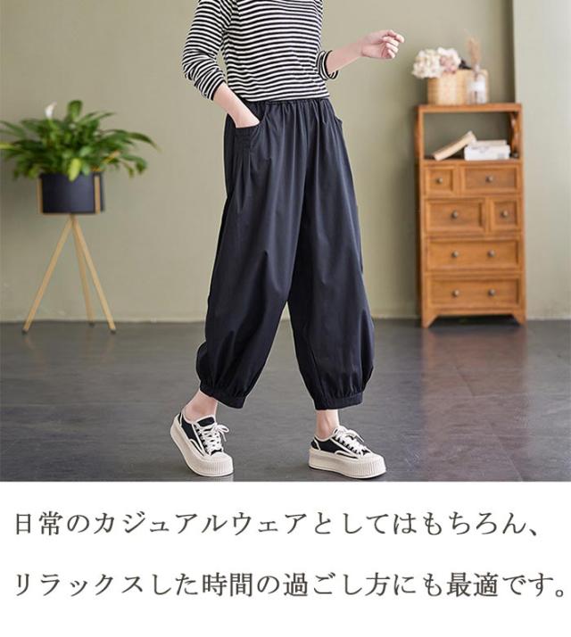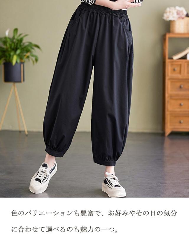 バルーンパンツ パンツ レディース サルエルパンツ ロング丈パンツ ワイドパンツ ギャザー アンクルパンツ 春 夏 ハロンパンツ イージーパンツ コクーンパンツ ウエストゴム ボトムス ロングパンツ