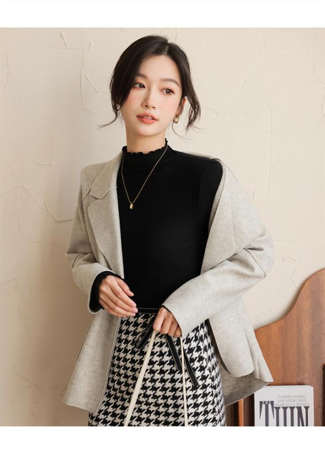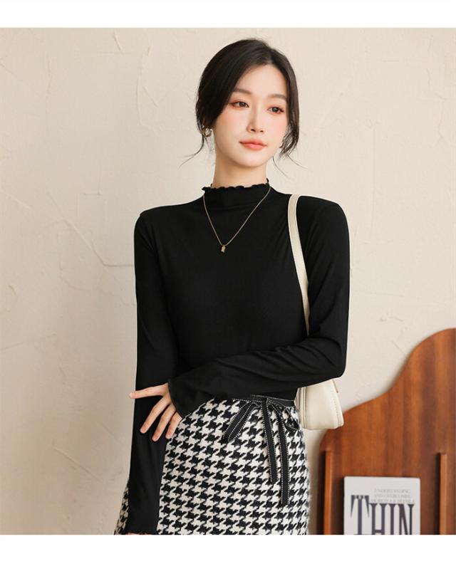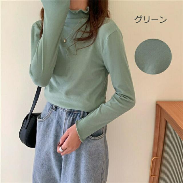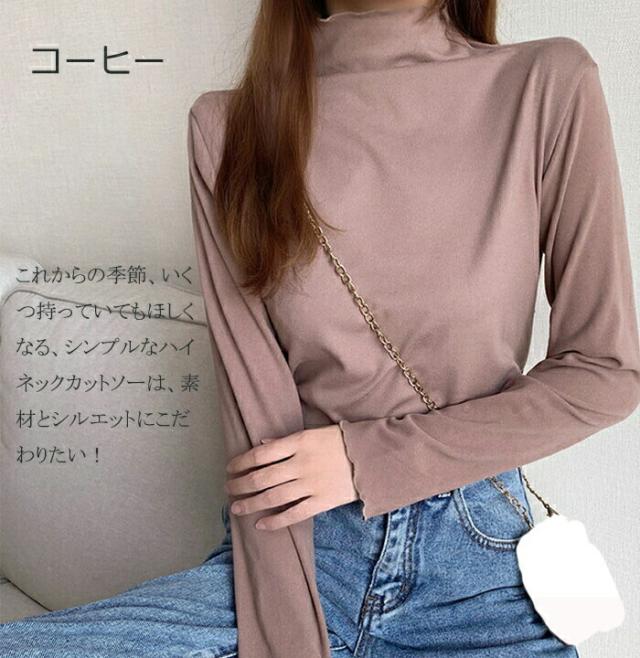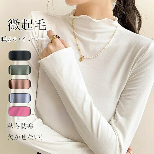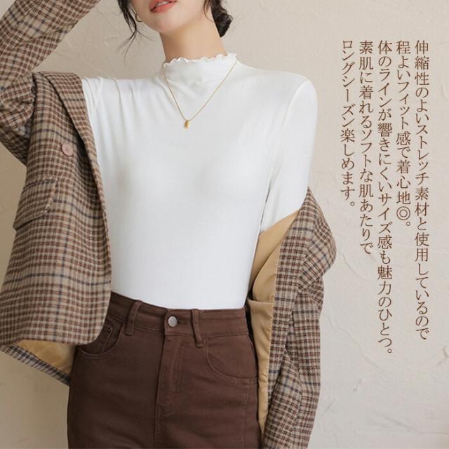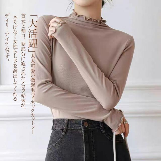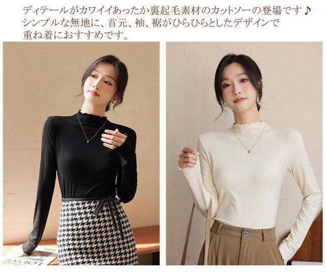プチハイネック カットソー インナー 秋冬 微起毛 レディース 長袖 トップス ブラウス 長袖インナー ハイネック ストレッチ 柔らか コーデ レイヤード おしゃれ フリルネック カラバリー きれいめ