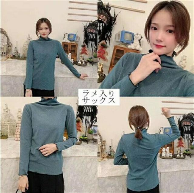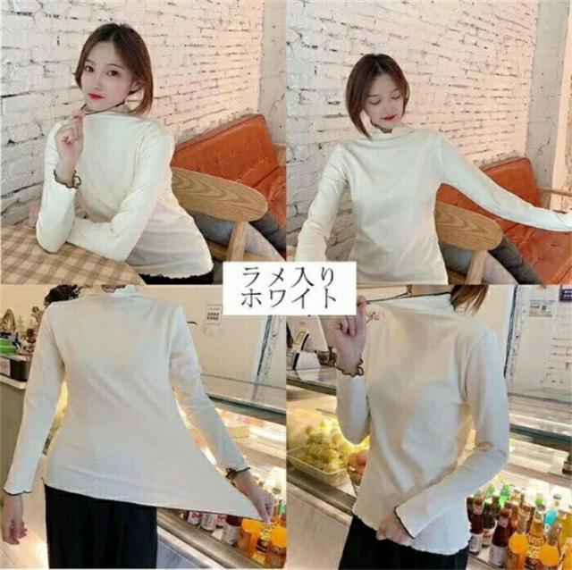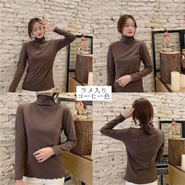 プチハイネック カットソー インナー レディースファッション 通販 イエロー ピンク ホワイト ブラック コーヒー ラメ入りピンク ラメ入りブラック ラメ入りホワイト ラメ入りコーヒー色 ラメ入りサックス