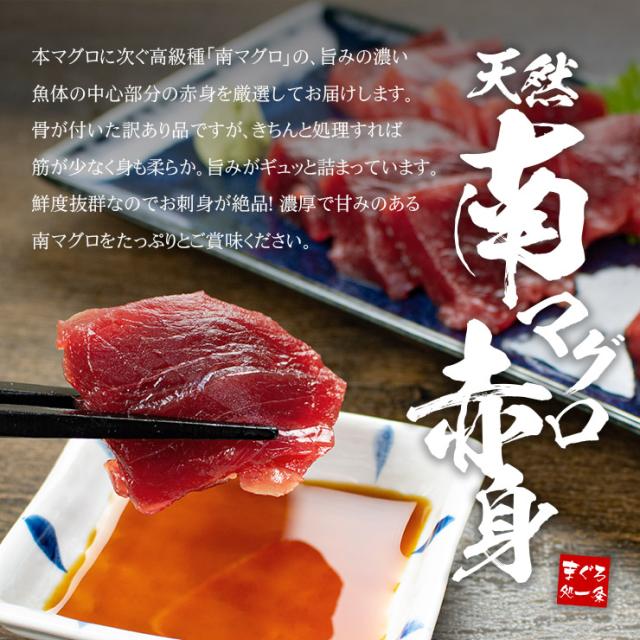 たっぷり1kg!お刺身約8人前お届け!本マグロに次ぐ高級種「南マグロ」の希少な天然物!骨付きのままお届けするので手間はかかりますが、骨に近い赤身はなめらかな食感とまぐろの旨みが濃厚で絶品です!マグロ解凍レシピ付き。