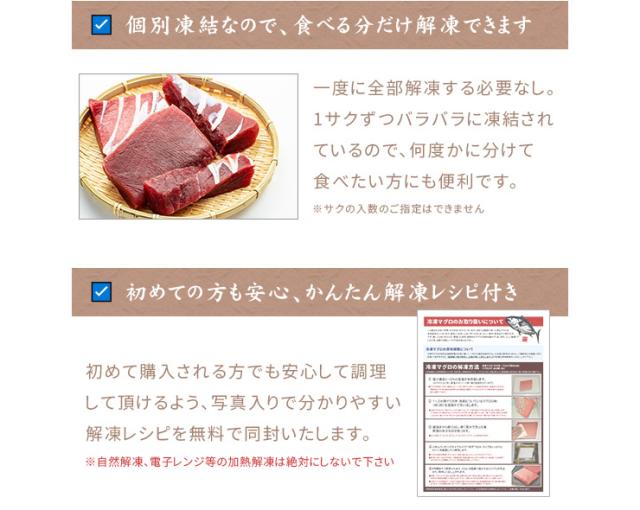| 商品名 | 天然南マグロ赤身 解凍レシピ付き | |||