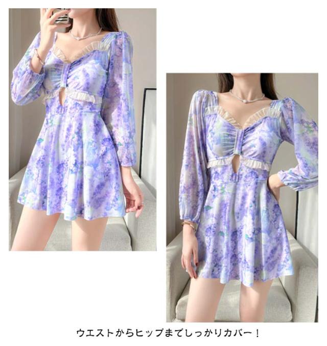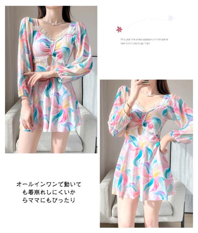 オールインワン ママ水着 大きいサイズ カバーアップ 花柄 オフショルダー ぽっちゃり フレア 黒 体型カバー水着 二の腕 20代 ワンピース水着 ワンピース水着 オトナ女子 レディース 30代 40代 露出控えめ スイムウェア 海外 夏休み 海水浴 プール 温泉水着